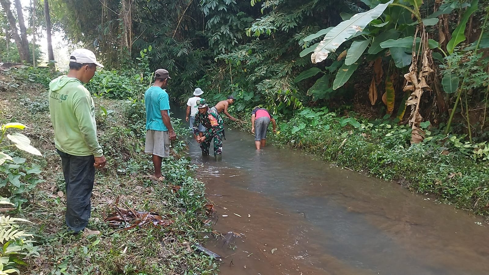 Kegiatan pembersihan ini difokuskan pada pengangkatan sampah serta rumput liar yang menyumbat aliran sungai. Hal ini dilakukan guna menjaga kelancaran aliran air menuju lahan pertanian warga, sehingga kebutuhan irigasi tetap terpenuhi dengan baik.