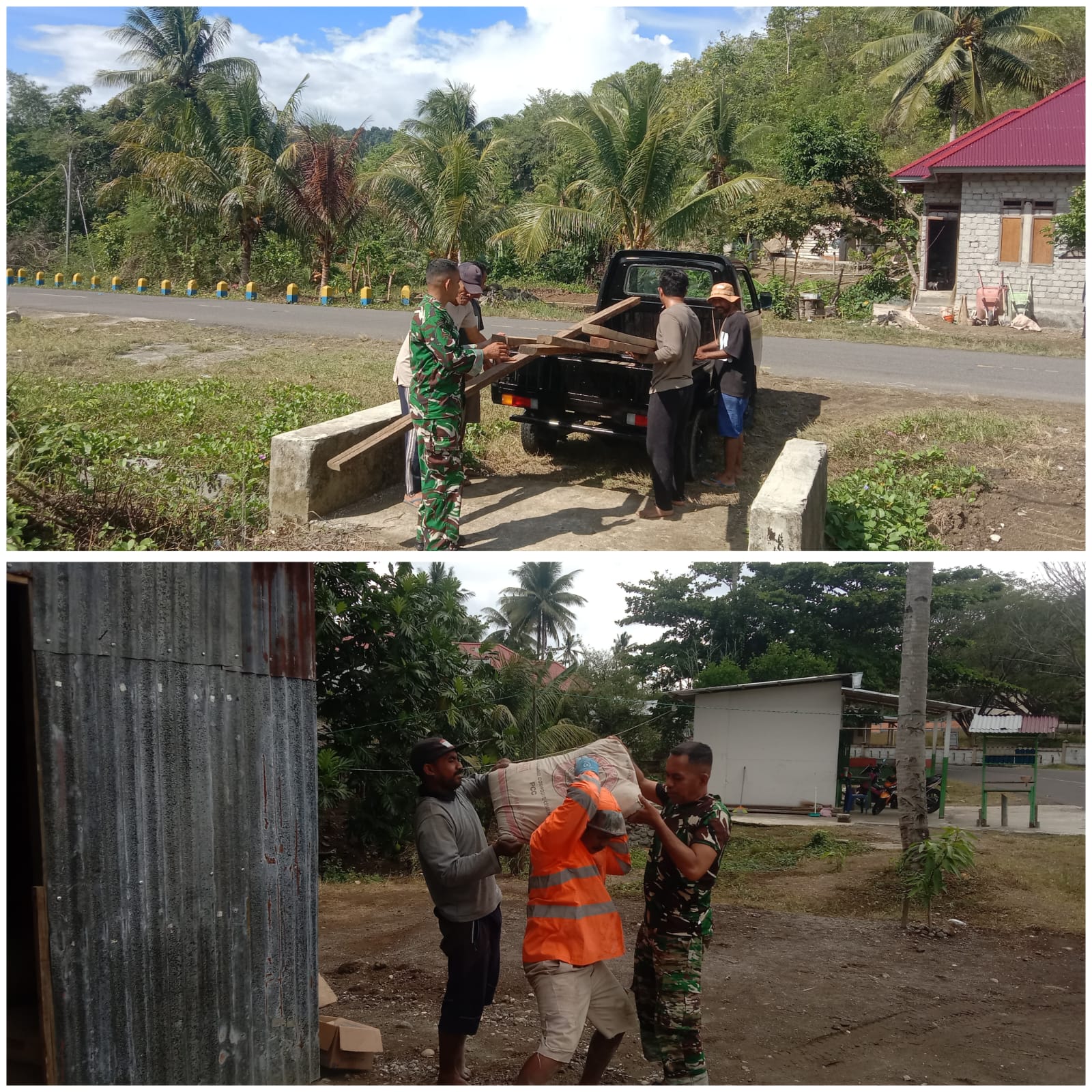 Personel Kodim 1505/Tidore bersama warga setempat akan bergotong royong dalam proses pembangunan, mencerminkan semangat kebersamaan dan sinergi antara TNI dan rakyat.