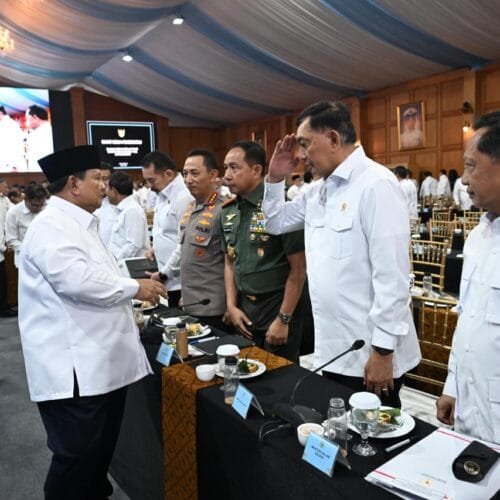 Jakarta – Panglima TNI Jenderal TNI Agus Subiyanto menghadiri Rapat Kerja Pemerintah yang dipimpin langsung oleh Presiden RI Prabowo Subianto bersama anggota Kabinet Merah Putih, Pejabat Eselon I Kementerian/Lembaga, serta Direktur Utama BUMN, bertempat di Kompleks Istana Kepresidenan Jakarta, Rabu (8/4/2026).