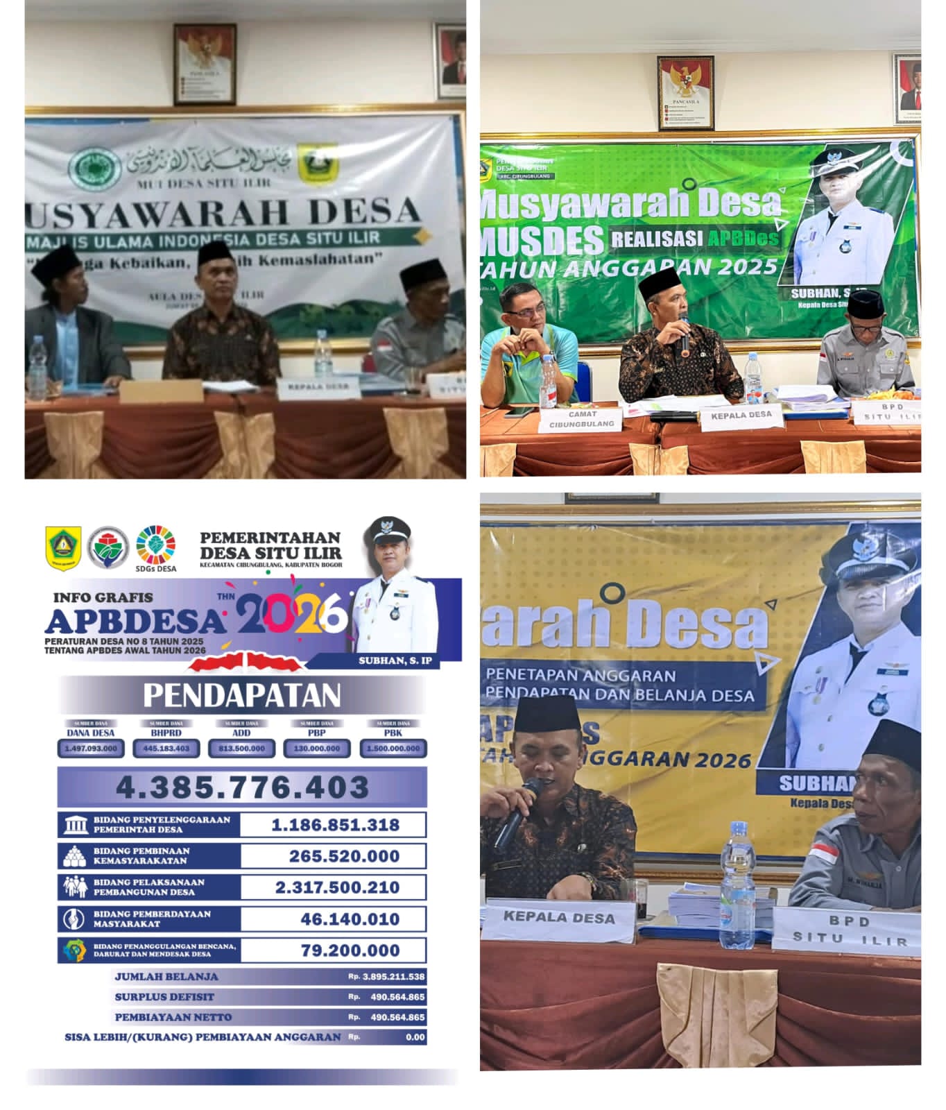 Kabupaten Bogor, radarnusantara net — Pemerintah Desa Situ Ilir, Kecamatan Cibungbulang, Kabupaten Bogor, menggelar rangkaian musyawarah desa (Musdes) yang meliputi pembentukan Majelis Ulama Indonesia (MUI) Desa, penyampaian realisasi APBDes Tahun Anggaran 2025, serta penetapan Anggaran Pendapatan dan Belanja Desa (APBDes) Awal Tahun 2026, sebagai bagian dari penguatan tata kelola pemerintahan desa yang transparan dan partisipatif.(09/01/2025).