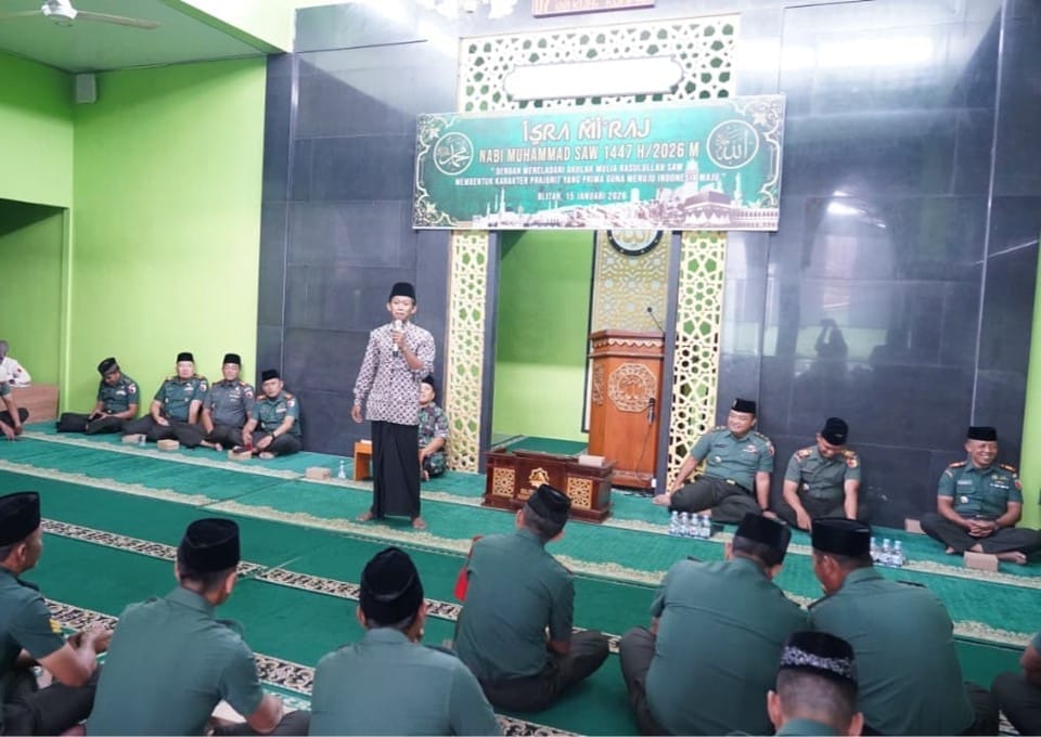 Kasdim 0808/Blitar Mayor Inf Imam Suyoso, S.Ag., dalam sambutannya menekankan bahwa Isra’ Mi’raj merupakan peristiwa monumental bagi umat Islam, di mana Nabi Muhammad SAW memperoleh pengalaman spiritual dan perintah salat. Ia berharap momen ini tidak sekadar menjadi seremonial, tetapi menjadi pedoman bagi setiap prajurit untuk meneladani akhlak Rasulullah dalam mengemban tugas negara. Dengan mentalitas yang kuat, diharapkan prajurit TNI AD mampu memberikan pengabdian terbaik demi mewujudkan Indonesia Maju.