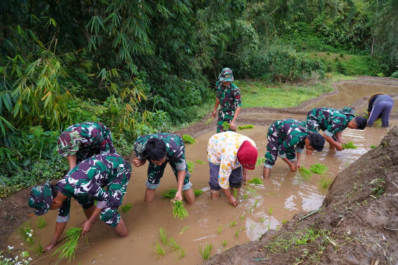 Kegiatan ini menjadi bagian dari sasaran nonfisik TMMD yang tidak hanya berfokus pada pembangunan infrastruktur, tetapi juga pemberdayaan masyarakat di sektor pertanian. Penanaman dilakukan secara gotong royong, dimulai dari penyiapan lahan hingga proses tanam bibit padi dengan memperhatikan pola dan jarak tanam agar hasil panen lebih optimal.