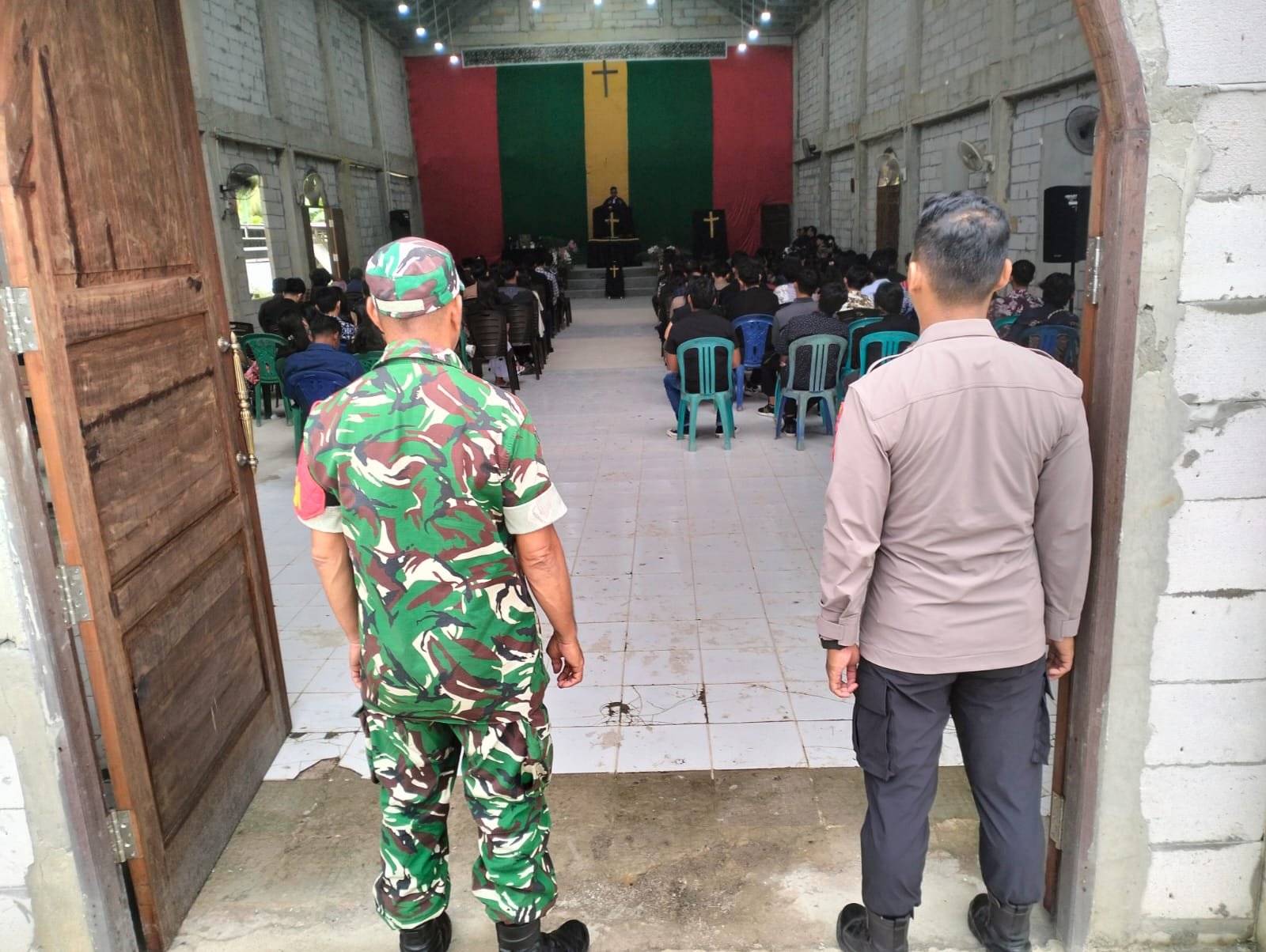 Sinergi ini dilakukan untuk menjamin kelancaran rangkaian ibadah dari awal hingga akhir, sehingga warga dapat beribadah dengan damai tanpa merasa khawatir akan gangguan keamanan di lingkungan sekitar(Mur)