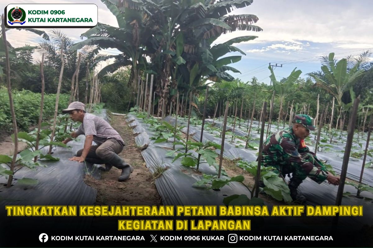 Kutai Kartanegara. radarnusantara.net- Dalam mendukung meningkatkan kesejahteraan petani yang ada di wilayah binaan, anggota Babinsa Koramil 0906-08/Muara Kaman Serma Makbul melakukan pendampingan kepada petani terong yang berada di wilayah binaan tepatnya rt 08 Desa Muara Kaman Ulu Kecamatan Muara Kaman, Senin 20/4/26.